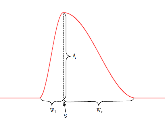 如下图,上面公式里\(A, s, w_l, w_r\)分别表示波的幅值、波峰(波谷)处位置、左半轴大小、右半轴大小。